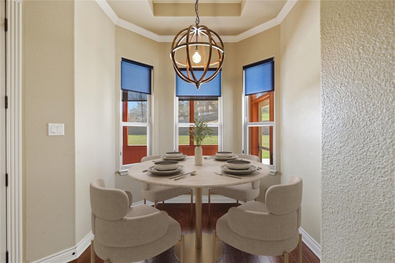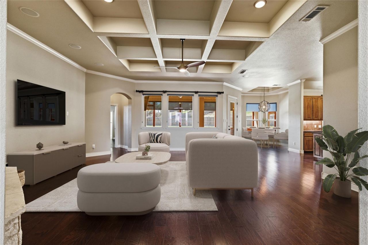 Located in the gated community of Bella Charca in Nolanville, this custom-built Dewald home offers 2,822 square feet on an oversized .415-acre lot, including 2,462 square feet in the main home and a 360-square-foot flex room above the garage. With 4 bedrooms and 3 baths, the layout balances everyday comfort with versatile living space.Significant recent improvements provide peace of mind, including a 25-year composition shingle roof (December 2024), 14 SEER 4-ton Goodman heat pump system (2023), dedicated mini-split for the flex room (2023), Renewal by Andersen SmartSun window replacement in the primary bath (2023), and a Hunter 14-zone Wi-Fi enabled irrigation controller (2024). In 2025, all three bathrooms were upgraded with new Delta plumbing fixtures, and a Wi-Fi Emerson Sensi smart thermostat was added. Additional upgrades include recently installed tile flooring in the guest bedrooms, dishwasher replacement, patio extension, two new fence sections, refinished screened patio, updated exterior lighting, and replacement of interior lighting and ceiling fans throughout.Energy efficiency is enhanced by spray foam insulation and two Rinnai gas tankless water heaters. The home also features no carpet, space saving pocket doors, ADA accessible design elements, a hardwired security system, surround sound, and plumbing and electrical in place for a future pool.The kitchen offers granite countertops, gas cooktop, solid wood cabinetry, and a large island opening to the living room with coffered ceiling, crown molding, and gas fireplace. The primary suite includes patio access, oversized walk-in closet, jetted tub, walk-in shower, and dual vanities. Outdoor living is anchored by a covered patio with built-in gas grill and sink, plus a screened sunroom overlooking the spacious backyard.