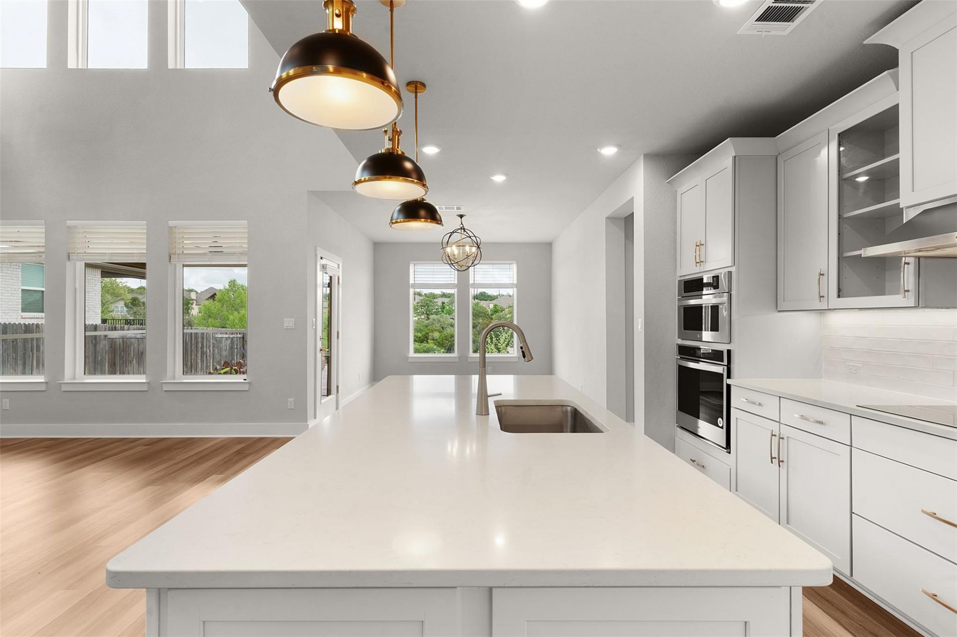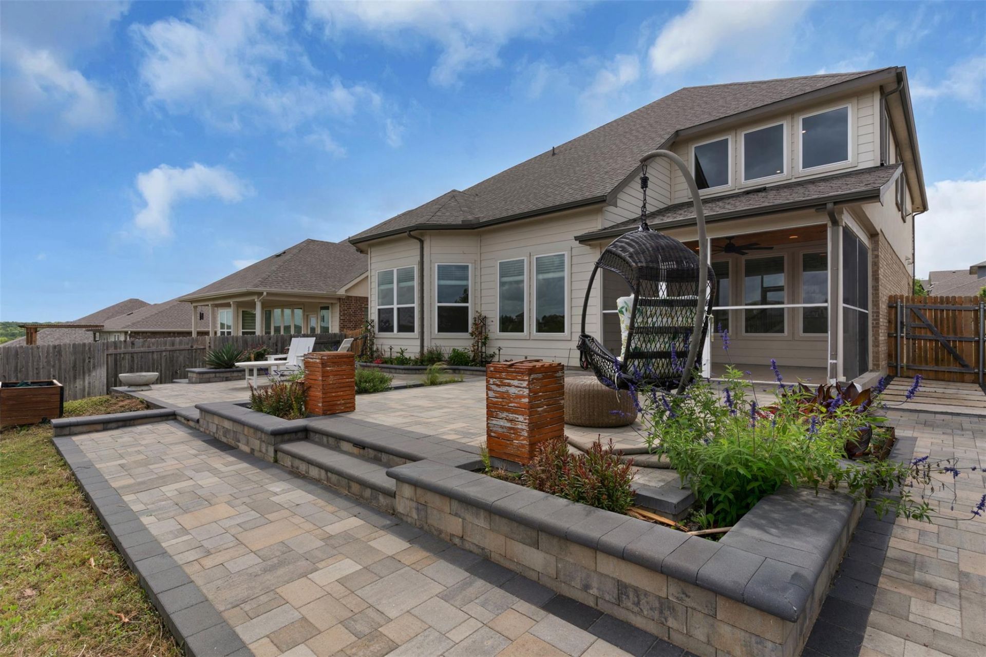 Experience the perfect blend of Texas Hill Country serenity and urban convenience in the highly coveted Water Oak at San Gabriel. This 2,835 sq. ft. masterpiece is designed for those who want the view without the commute. Step inside to soaring ceilings and a light-filled living area that flows naturally into a chefs kitchen. The main floor is built for privacy and productivity, featuring a dedicated entry office and a primary retreat with a custom California-style closet. The real showstopper is waiting outside. Forget the rear neighbors?your backyard is a tiered oasis of custom pavers overlooking stunning, unobstructed Hill Country views. Whether youre hosting a summer BBQ or enjoying a quiet evening on the screened-in covered porch with custom lighting, this is outdoor living at its finest. Upstairs, the massive game room and oversized storage closet ensure theres a place for everything. Located minutes from Wolf Ranch and perfectly positioned between IH-35 and Hwy 183 for a seamless Austin commute. Contact the listing agent for private showings or questions!