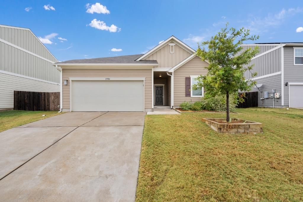 Welcome to 13904 Mark Christopher Way, a beautifully maintained 4-bedroom, 2-bath single-story home nestled in a quiet suburban community in Manor, TX. Designed with comfort and convenience in mind, this home features a bright, open floor plan with no interior steps, recessed lighting, ceiling fans, and a smart thermostat for modern living. The spacious kitchen is perfect for both everyday living and entertaining, offering granite countertops, a large center island, breakfast bar, pantry, and multiple dining areas. The private primary suite includes a generous walk-in closet and an en-suite bathroom, while three additional bedrooms provide flexibility for guests, a home office, or family needs. Interior finishes include a blend of durable vinyl flooring and comfortable carpeting. The home also comes fully equipped with a complete appliance package including a refrigerator, electric range, microwave, dishwasher, disposal, and in-unit washer and dryer. The laundry room is conveniently located inside on the main level. Step outside to enjoy a covered patio and a private, fenced backyard on a level lot with both front and back yard space?ideal for relaxing or entertaining outdoors. The attached two-car garage, paved driveway, and front-facing entrance provide easy access and ample parking. Residents will also enjoy community amenities including a clubhouse, pool, sidewalks, and street lighting. Conveniently located just minutes from local parks, schools, grocery stores, and popular dining options in Manor and East Austin. Pets are welcome with some restrictions. Cats and small to medium dogs are allowed (no large dogs, please). Tenants are required to enroll in the Resident Perks Program for $25 per month per household.