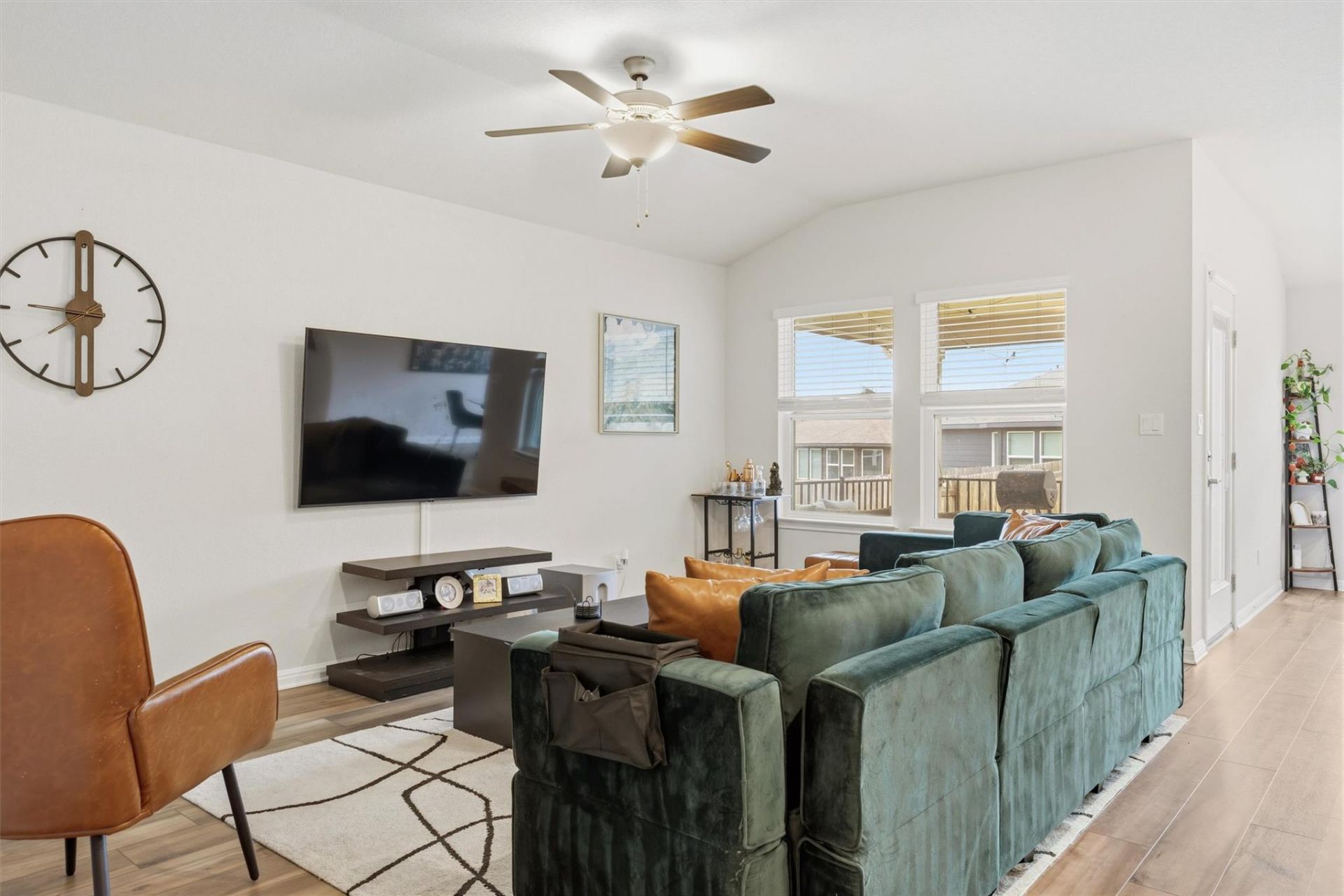 162 El Capitan Loop | Dripping Springs, TX Modern Organic Living in Big Sky RanchStep into this coveted single story residence where clean lines meet Hill Country tranquility. This home showcases a sophisticated modern aesthetic, defined by a crisp white palette, natural wood-style flooring, and an abundance of organic light.Interior Highlights:Chefs Kitchen: The heart of the home features a granite island with breakfast bar seating, sleek white shaker cabinetry, and a designer hexagonal tile backsplash.Primary Retreat: A true sanctuary highlighted by a tray ceiling and a dramatic bay window wall. The ensuite bath features a double vanity with a sleek glass-enclosed walk-in shower and an oversized walk-in closet with ample built-in storage.Open Concept: The kitchen flows seamlessly into a spacious living area, characterized by a clean, minimalist energy.Outdoor Living & Amenities:Covered Patio: Extend your living space outdoors to a deep, covered porch?perfect for evening grilling and lounging at sunset.Manageable Green Space: The backyard offers a lush lawn & wood fencing for privacy providing a serene lock-and-leave lifestyle.Thoughtful Details: From the modern matte hardware to the recessed lighting , every corner of this home feels intentional and high end.The Location: Perfectly positioned in Dripping Springs, you are minutes from acclaimed local schools and the vibrant heart of the city, all while enjoying the quiet, scenic backdrop of Big Sky Refined. Modern. Move-in Ready.