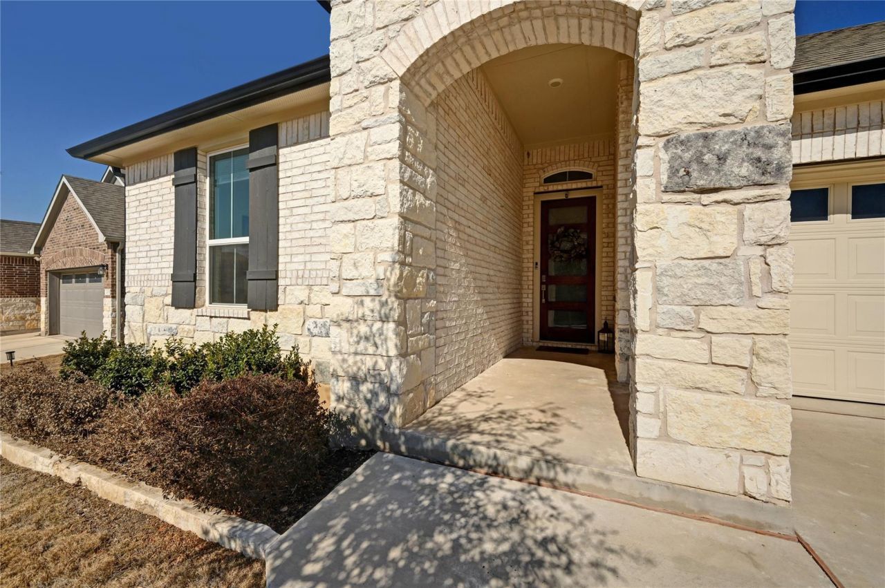 Beautiful single-story home available for lease in the desirable Bar W Ranch community in the Texas Hill Country. This home offers charming curb appeal with a stone and brick exterior and limestone-bordered flower beds. Enjoy added privacy with no rear neighbors and a more open backyard setting. Inside, youll find a bright, modern interior with neutral tones, luxury vinyl plank flooring, recessed lighting, quartz countertops, high ceilings, and tall doors that create a spacious feel. The thoughtfully designed floor plan provides comfortable, easy living with abundant natural light throughout. The open-concept kitchen features a large island with breakfast bar, stainless steel appliances, and a generous corner pantry. Upgraded ceiling fans enhance the bedrooms, while the living area is highlighted by a stylish chandelier. The primary suite offers a tray ceiling, dual closets, a frameless walk-in shower with upgraded shower head, and a separate garden tub for a relaxing retreat. Additional features include a mudroom with extra storage, a salt-free water softener system, a two-car garage with upgraded opener, and an automatic sprinkler system. The spacious backyard boasts a covered patio with added shade, exterior string lighting, and a side walkway with porcelain pavers and pebbles?ideal for trash can storage. Community amenities are just two blocks away and include a resort-style pool, clubhouse, playground, dog park, fire pits and grills, soccer field, and sand volleyball court. Conveniently located off Ronald Reagan Boulevard with easy access to H-E-B, shopping, dining, gyms, and nearby Austin, Georgetown, and Cedar Park?offering small-town charm with close proximity to the city of Leander.