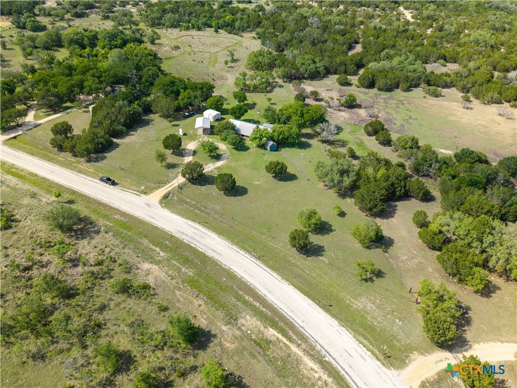 Escape to your own private Texas retreat?perfectly situated just minutes from everyday conveniences, yet offering the peace and privacy of country living. Nestled on just under 2 acres along a quiet country road, this beautifully maintained property is fully fenced and gated, providing both security and serenity. The land features multiple outbuildings, ideal for a workshop, hobbies, or additional storage, with plenty of space for horses and outdoor enjoyment. The charming 2-bedroom home showcases quality craftsmanship with custom features and thoughtful details throughout, creating a warm and inviting atmosphere.