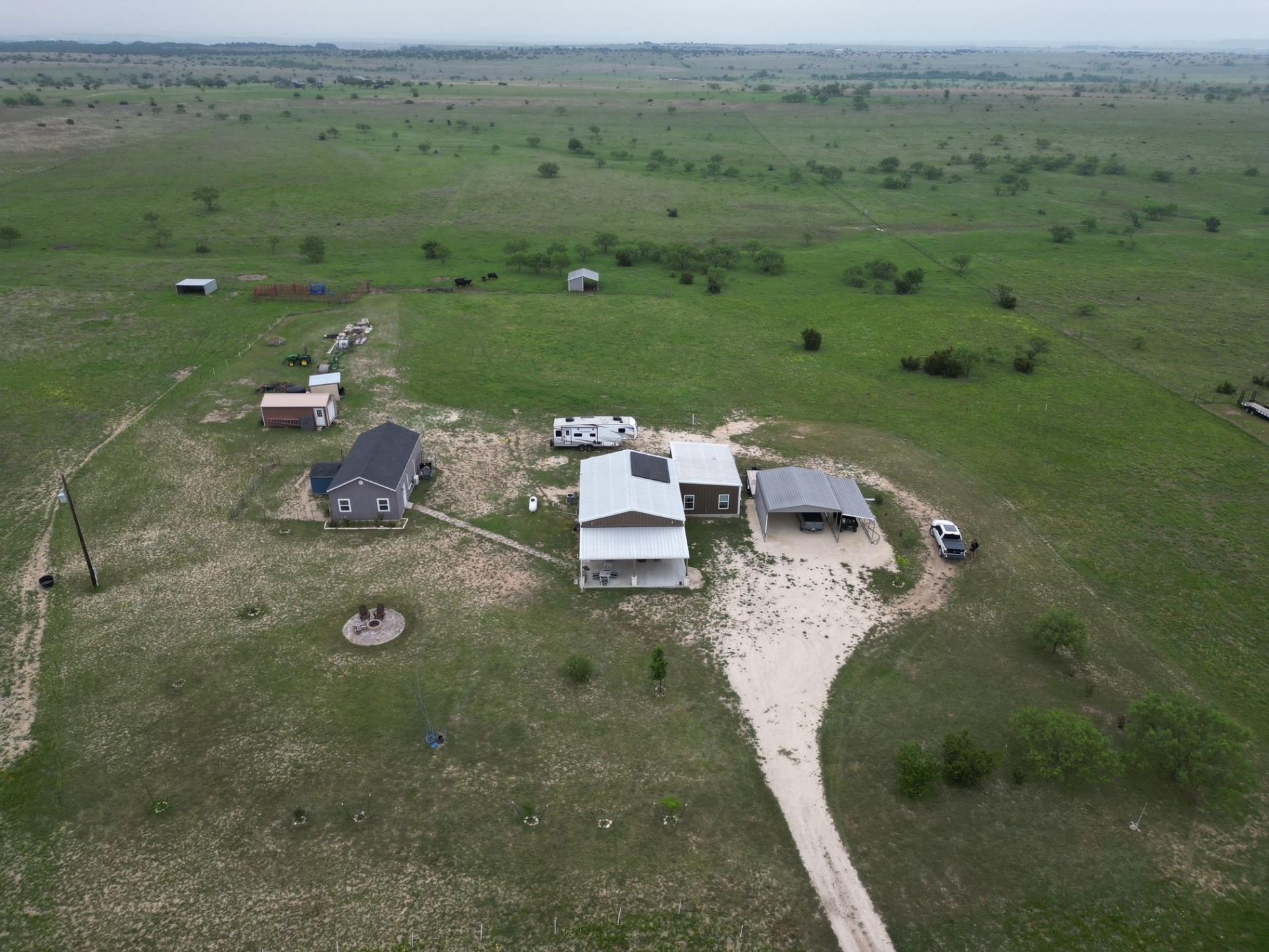 Look at this beautiful custom-built barndominium home sitting on 20.2 acres in the Texas Hill Country within 90 minutes from Austin, including utilities in place! There is also an additional 20.02 acres with water and electric utilities available for purchase for a total of 40+ acres and a home (MLS# 3339116)! There are endless opportunities with this fully fenced and cross fenced property, providing perfect panoramic views of rolling hills, wildlife, hunting, farming, and ample room for livestock on the remaining property if desired. The 1800 sq ft main house is cozy and comfortable, with amazing attention to detail throughout. Play your favorite music on the Bose system as you enjoy open kitchen to living spaces. This home offers two bedrooms, two full baths, and a laundry room big enough for a Murphy bed! The 20 x 30 primary suite is super spacious including two oversized walk-in closets, an amazing walk-in shower, dual vanities, smart lighting, all controlled by a personal mini split AC system. The property includes solar panels, and has a room ready for your personal generator equipped to run everything if you need! Reverse osmosis is available in the kitchen, along with two water softeners and filtration systems for amazing water. This property is perfect for off-grid minded individuals!Other improvements include a separate 800 sqft structure currently used as an office/storage. 300 Sqft is the finished-out office including electricity, and a personal mini split AC. Ethernet cable and is hardwired to the main house, so the office is fully operational! The remaining 500 Sqft is a garage/ storage with its own mini split AC as well!There is also an extra 12 x 24 storage building for all your outside equipment needs, a smaller shed for more storage, and a covered shelter for the cattle on the backside of the property. Don't miss this chance to have a piece of the Texas Hill Country!