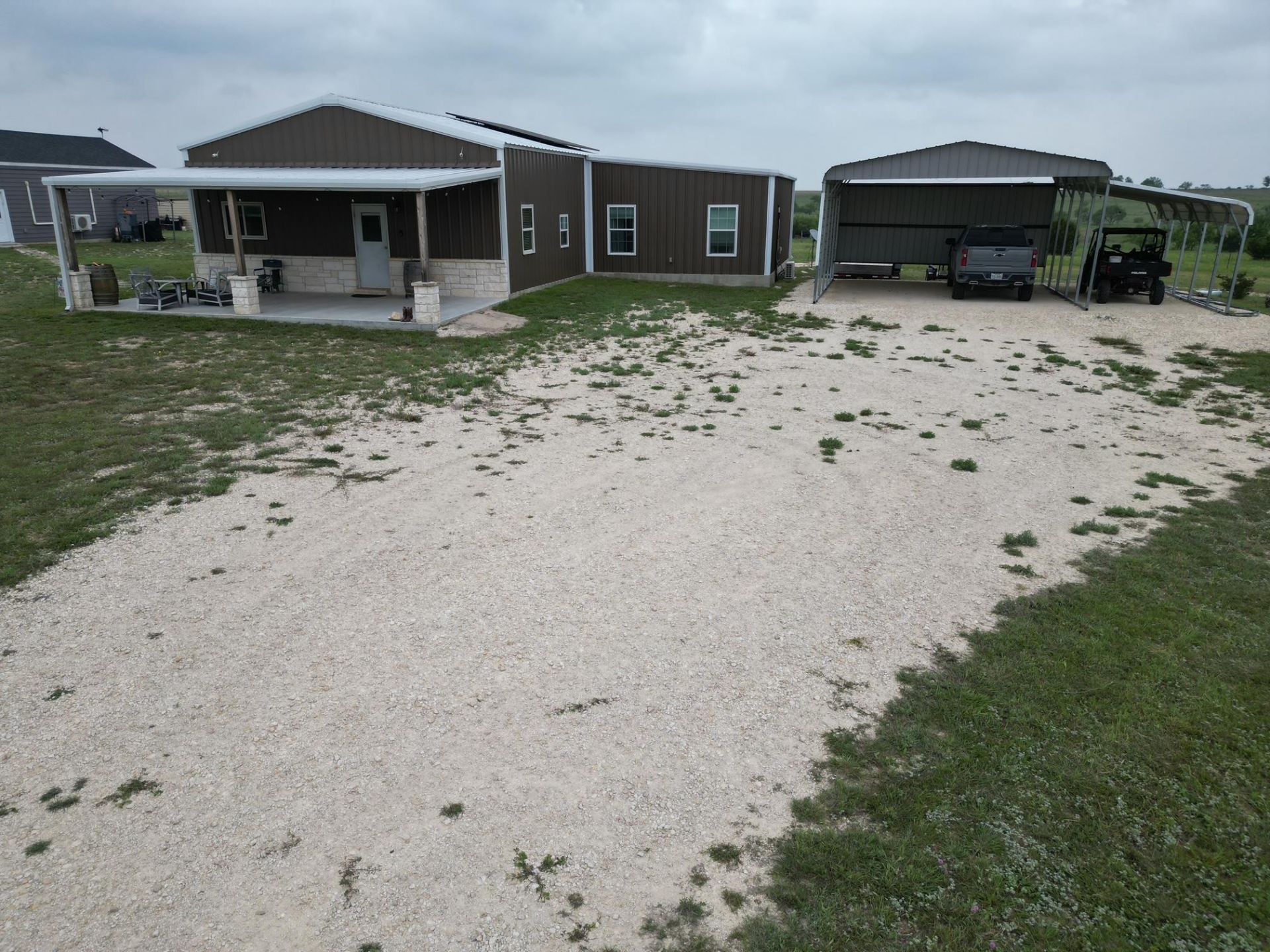 Look at this beautiful custom-built barndominium home sitting on 20.02 acres in the Texas Hill Country within 90 minutes from Austin, including utilities in place! There is also an additional 20.02 acres with water and electric utilities available for purchase for a total of 40+ acres and a home (MLS# 3339116)! There are endless opportunities with this fully fenced and cross fenced property, providing perfect panoramic views of rolling hills, wildlife, hunting, farming, and ample room for livestock on the remaining property if desired. The 1800 sq ft main house is cozy and comfortable, with amazing attention to detail throughout. Play your favorite music on the Bose system as you enjoy open kitchen to living spaces. This home offers two bedrooms, two full baths, and a laundry room big enough for a Murphy bed! The 20 x 30 primary suite is super spacious including two oversized walk-in closets, an amazing walk-in shower, dual vanities, smart lighting, all controlled by a personal mini split AC system. The property includes solar panels, and has a room ready for your personal generator equipped to run everything if you need! Reverse osmosis is available in the kitchen, along with two water softeners and filtration systems for amazing water. This property is perfect for off-grid minded individuals!Other improvements include a separate 800 sqft structure currently used as an office/storage. 300 Sqft is the finished-out office including electricity, and a personal mini split AC. Ethernet cable and is hardwired to the main house, so the office is fully operational! The remaining 500 Sqft is a garage/ storage with its own mini split AC as well!There is also an extra 12 x 24 storage building for all your outside equipment needs, a smaller shed for more storage, and a covered shelter for the cattle on the backside of the property. Don't miss this chance to have a piece of the Texas Hill Country!