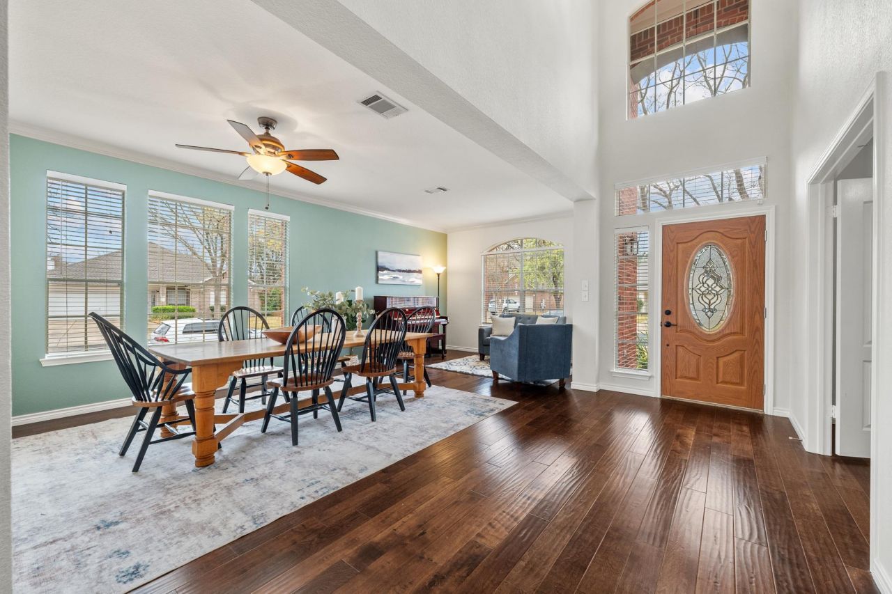 If youve been looking for a home in Vista Oaks that actually has room for everyone to spread out, this 5-bedroom, 3.5-bathroom single-family property is exactly what you need. It sits on a spacious, .20-acre corner lot shaded by mature trees that make this neighborhood feel so established. Whats really unique here is the layout; you get two full primary suites, one on the main floor and one upstairs, which is a total game-changer for long-term guests or a multi-generational setup. The first thing youll notice on the main level is the light. The living room stays bright all day thanks to a wall of windows that makes the backyard feel like part of the room. It features wood floors, a corner fireplace, and a wrap-around bar that looks right into the kitchen, with granite countertops, tile backsplash, a gas cooktop, and a built-in oven and microwave, so you can hang out while dinner is cooking. Theres a dedicated office tucked right off the foyer for a quiet workspace, and the first-floor primary suite, with its own ensuite bath, is just off the living area. Upstairs you'll find the game room that acts as the hub for three large guest bedrooms and the second primary suite. This upper suite is huge, with its own sitting area by the windows and a primary bath featuring a soaking tub and a step-in shower updated in 2026. Living in Vista Oaks puts you in a prime spot between Cedar Park and Round Rock. Youre walkable to Williamson County Regional Park, and about 10 minutes from Costco, HEB, and the Round Rock Outlets. Local favorites like Red Horn Coffee and Jack Allens are right nearby, and with easy access to I-35 and 183, you can be in Georgetown in 20 minutes or downtown Austin in 35. To top it off, the big stuff is already handled: a Class IV impact-resistant roof, 2 updated water heaters (one tankless), and fresh paint from 2023.