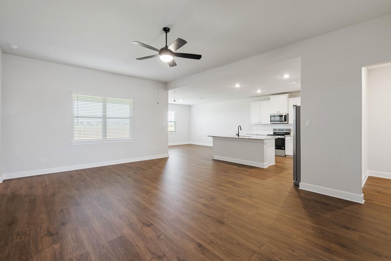 The Leland by LGI Homes is a three-bedroom home filled with designer upgrades and features including an exceptional island, beautiful granite countertops and stainless-steel appliances in the kitchen. A spacious walk-in pantry also provides room for the whole familys favorite snacks and food. An additional room can be used as a guest room or as a flex space for a study or office. The master bedroom is tucked in the back of the house and is connected to the luxurious master bath that contains two walk-in closets and dual sink vanity. Throughout the home four linen closets are strategically placed to keep towels, bedding, and household supplies neatly tucked away. With storage solutions in every corner, this home is as functional as it is comfortable!