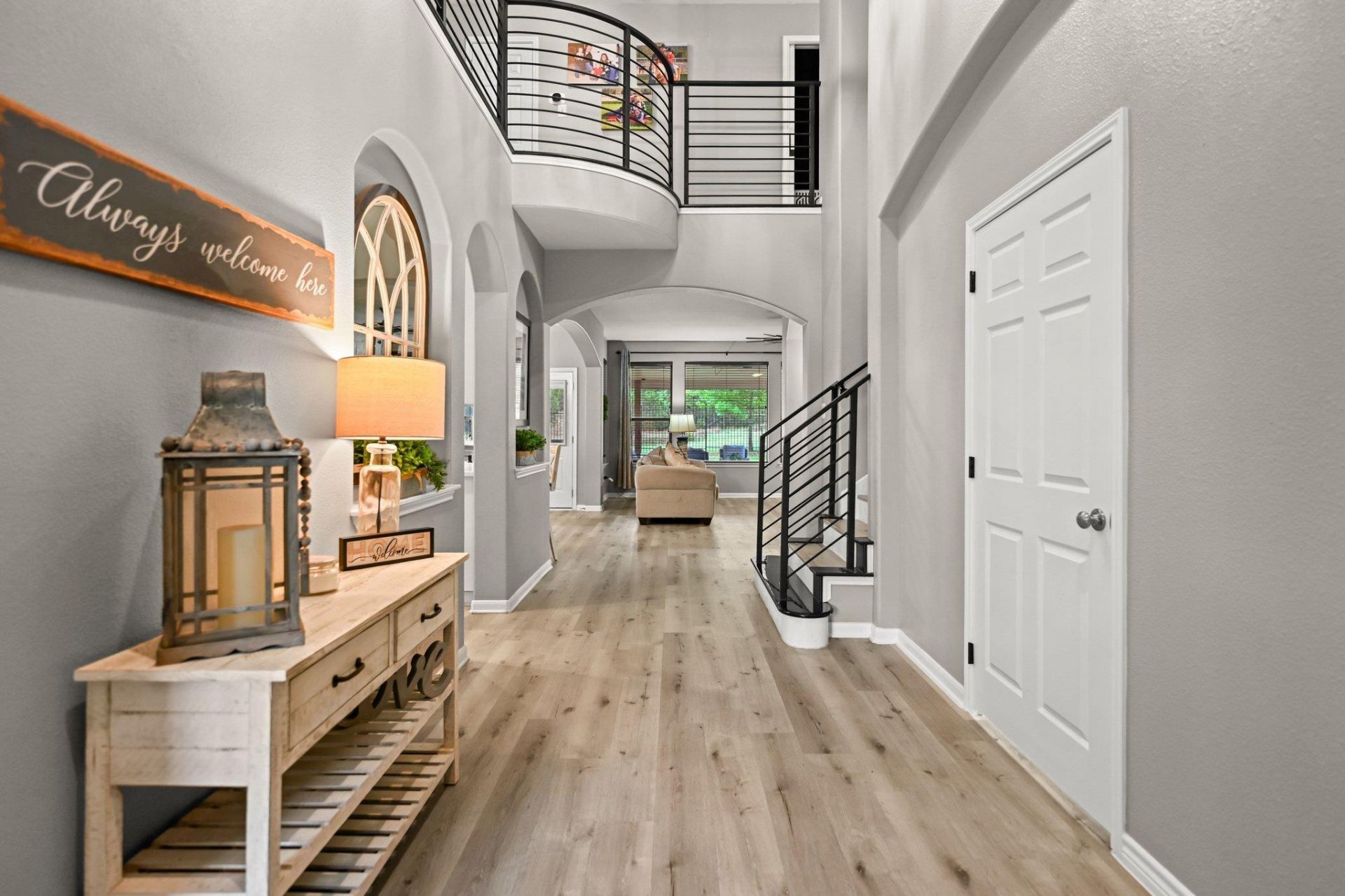 Welcome to this highly customized home in West Cypress Hills, where every surface has been thoughtfully upgraded to elevate the living experience. From the moment you step inside, youre greeted by gorgeous LVP flooring that flows seamlessly throughout the home, creating a bright, fresh, and cohesive feel.The former formal dining room has been beautifully transformed into a sophisticated wine lounge, complete with a wine fridge and electric fireplace?an ideal space for relaxing or entertaining guests. Just off the main living area, the original office has been thoughtfully converted into a private MIL suite, featuring a full bathroom and closet, perfect for guests or multigenerational living.At the heart of the home, the kitchen and primary bathroom have both been completely remodeled with stylish, high-end finishes that balance modern design with everyday functionality. Step outside to the spacious extended back patio, where you can unwind while enjoying peaceful green space views and added privacy.Rounding out the home is a highly customized theater room designed for the ultimate entertainment experience. With its extensive upgrades and truly one-of-a-kind features, this home presents a rare opportunity within the highly sought-after Lake Travis ISD.
