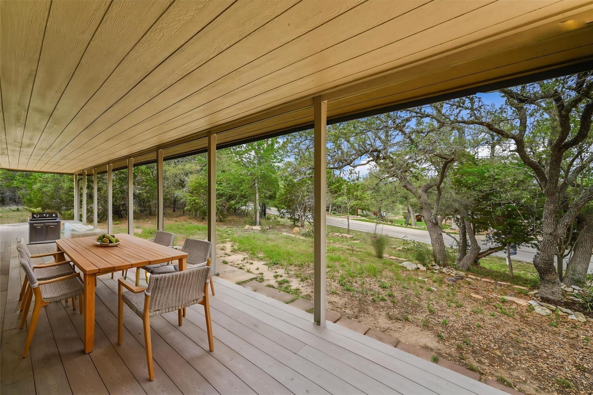 Tucked behind a canopy of mature trees, the setting feels private and established, giving the home a true Hill Country backdrop that is hard to recreate.The cottage style design is full of character, anchored by an oversized front porch that adds both presence and function. It is the kind of detail that immediately sets this home apart and carries through the rest of the property.Inside is where things really start to stand out. The finish out was not just selected, it was curated. Materials and design elements were sourced from multiple locations, bringing together a level of detail and individuality you do not often see. Real wood flooring runs through the main living areas, adding warmth and authenticity, while the kitchen and baths feature granite countertops that tie everything together with a clean, elevated look.The kitchen is a true focal point, highlighted by luxury cabinetry that elevates the entire space. The craftsmanship, design, and storage make it as functional as it is visually striking, creating a space that feels custom rather than standard.Out back, the property opens up with a large, usable yard that gives you room to expand, entertain, or simply enjoy the space around you, all while maintaining that sense of privacy created by the surrounding trees.660 Possum Tree is a rare combination of setting, character, and thoughtfully sourced finishes, built for someone who appreciates the difference between standard and truly well put together.