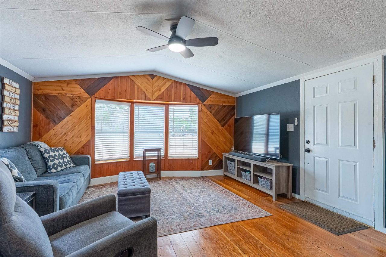Discover peaceful country living on 5.84 private, tree-filled acres with very little to almost no restrictions and no HOA, giving you the freedom to truly use the land the way you want. Whether youre looking to garden, raise chickens, bring animals, or simply enjoy space and privacy, this property offers flexibility that is becoming harder to find.The beautifully updated manufactured home features an open floorplan with gorgeous wood flooring and a striking accent wall crafted from wood sourced directly from the property, adding warmth and unique rustic character. The primary and secondary bedrooms feature updated vinyl flooring, and the secondary bedroom includes built-in shelving for added storage and functionality. The full bathroom has been refreshed with tile flooring and a spacious walk-in shower, complete with a modern pull-down shower head and built-in seating.Over $46,000 in improvements have been invested throughout the home and property. Updates include refinished wood floors, interior and exterior paint, remodeled closets, updated sinks and fixtures, window A/C units with heat, dishwasher installation, garbage disposal, water heater (2023), and a water softener installed in 2024.The acreage has been thoughtfully improved with tree trimming and brush clearing, creek cleanup, land regrading to create a gentle slope, a gravel parking area, and gated entry with coded access. Outdoor spaces include stained front and back decks, a garden area, chicken coop space, an 11x19 shed, and a fire pit perfect for relaxing on cool Texas evenings under the stars.Located just 10 minutes from Bertram, known for its small-town charm, wineries, and historic train rides. The property is also 20 minutes from Liberty Hill and Burnet, with convenient access to shopping, restaurants, HEB, and Liberty Hills growing retail area including a new Costco coming soon.